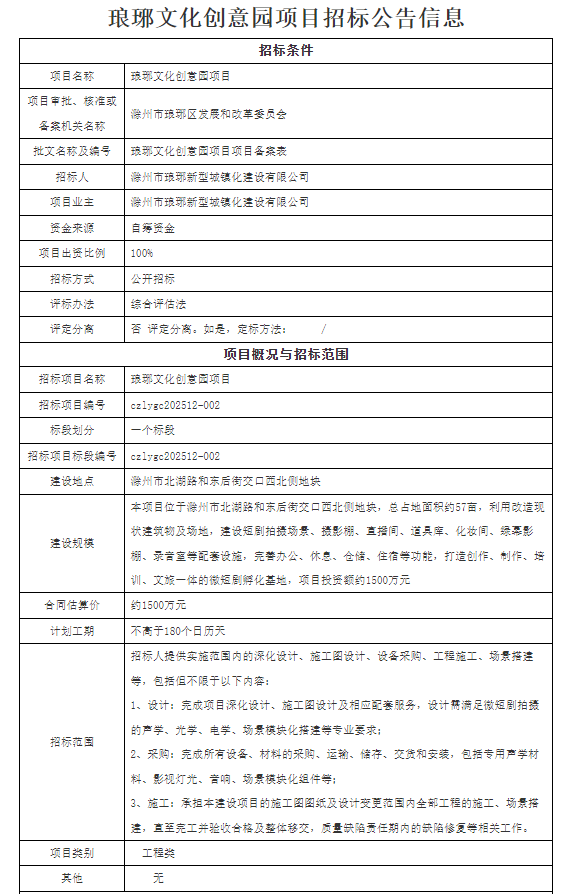 建设规模:本项目位于滁州市北湖路和东后街交口西北侧地块,总占地面积约57亩,利用改造现状建筑物及场地,建设短剧拍摄场景、摄影棚、直播间、道具库、化妆间、绿幕影棚、录音室等配套设施,完善办公、休息、仓储、住宿等功能,打造创作、制作、培训、文旅一体的微短剧孵化基地,项目投资额约1500万元 。