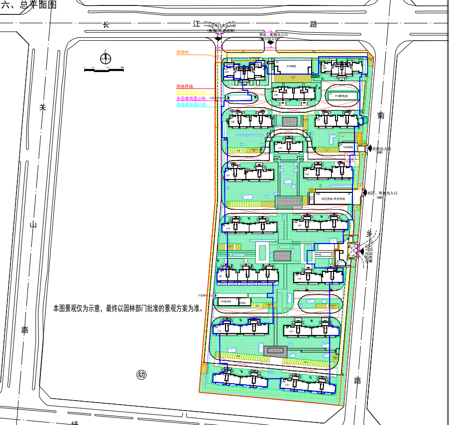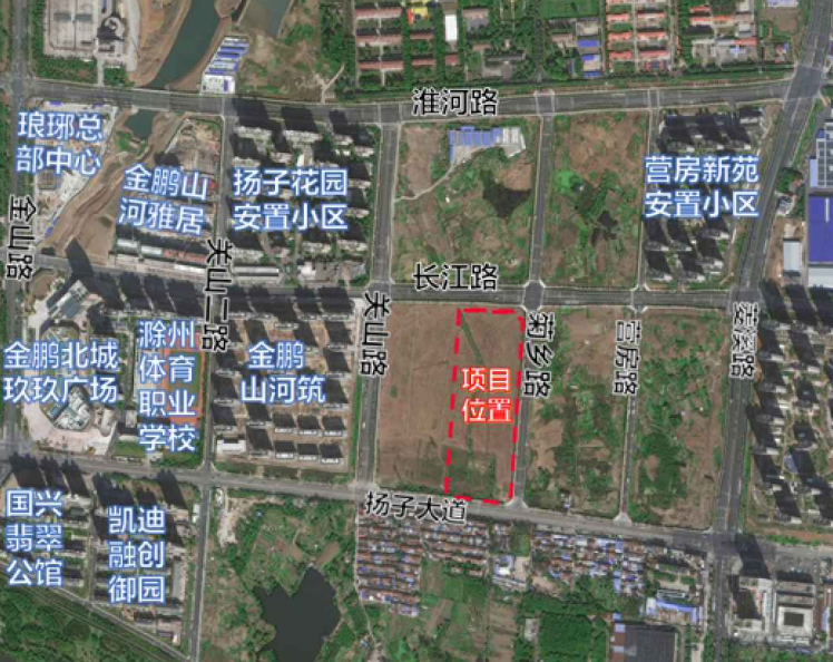 该项目位于扬子路与菊乡路交叉口西北侧,用地面积约83亩,用地性质为城镇住宅用地、商业用地,建设单位为滁州鹏展房地产开发有限公司。为提升项目品质及满足实际使用需要,现建设单位申请项目规划设计方案调整。