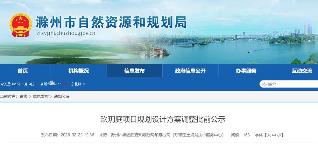 近日,滁州市自然资源和规划发布了《玖玥庭项目规划设计方案调整批前公示》。