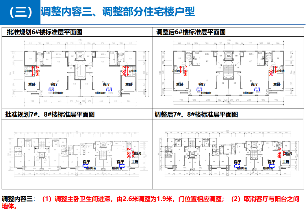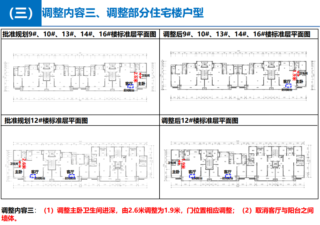 调整内容三:调整部分住宅楼户型,涉及的楼栋有2#楼、6-10#、12-16#楼。